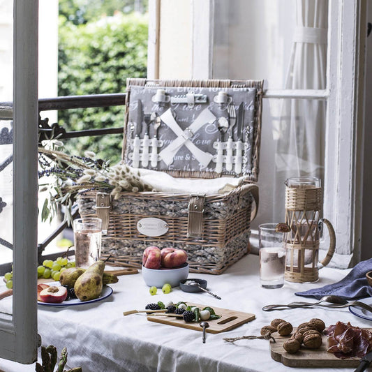 Les Jardins de la Comtesse vi propone eccezionali cestini da picnic in vimini intrecciati a mano per 2, 4 o 6 persone. Per condividere un pasto conviviale con la famiglia o gli amici all'ombra di un albero o di un ombrellone, non c'è niente di meglio di un bel cestino da picnic in vimini che contiene tutto il necessario per un picnic a due o in gruppo.
