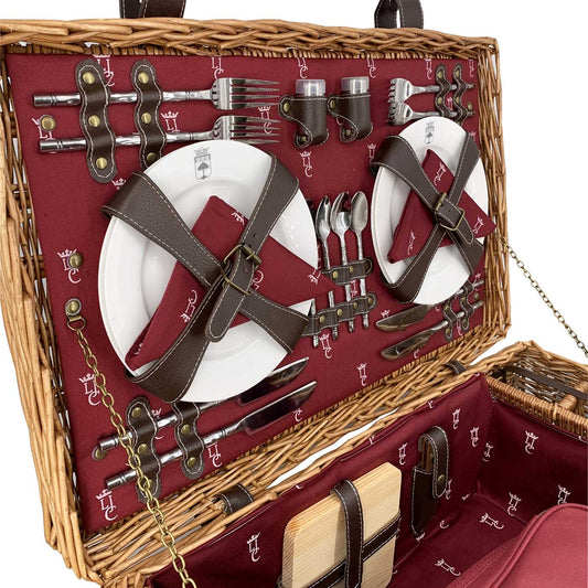 Tutti i nostri cestini da picnic sono realizzati in vimini e lavorati a mano in modo tradizionale. I nostri cestini sono completi di piatti in ceramica o alluminio, posate, saliera e pepiera e cavatappi (con coltello e apribottiglie). Fisso o rimovibile, il vano isotermico manterrà i vostri prodotti freschi o caldi. Un cestino da picnic vi regalerà un momento di convivialità indimenticabile.