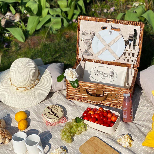 Les Jardins de la Comtesse hanno raccolto una selezione di prodotti che sicuramente vi piaceranno: sciarpe e plaid in cashmere e lana, stoviglie in melamina, cestini e altri accessori per il picnic...