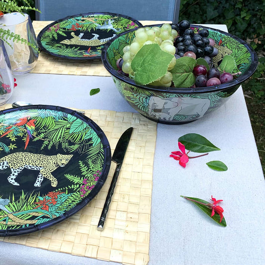 Piatto piano in pura melamina nero - Ø 28 cmJUNGLE- Piatto grande con un bel disegno della giungla- Perfetta sulla tavola- 28 cm di diametroPiatto piano in pura melamina nero - Ø 28 cmJUNGLE- Piatto grande con un bel disegno della giungla- Perfetta sulla tavola- 28 cm di diametroPrezzo di listino €13,12 EURPrezzo di listinoPrezzo unitario / perPrezzo scontato €13,12 EUR -