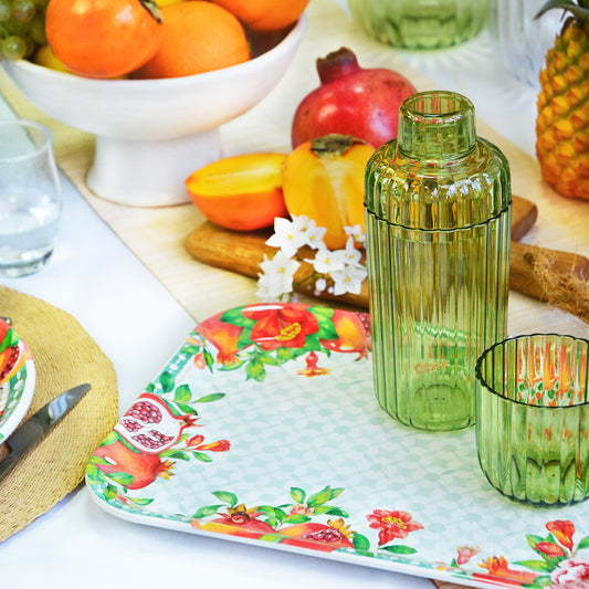 Trasportate facilmente le vostre stoviglie senza romperle grazie al grande vassoio in melamina ultraresistente. Il vassoio rettangolare è perfetto per tutti i pasti, sia davanti alla TV che in giardino! Un must per ogni casa! Il vassoio di design Les Jardins de la Comtesse può essere orgogliosamente posizionato sull'alzatina della cucina o sul tavolo del soggiorno.