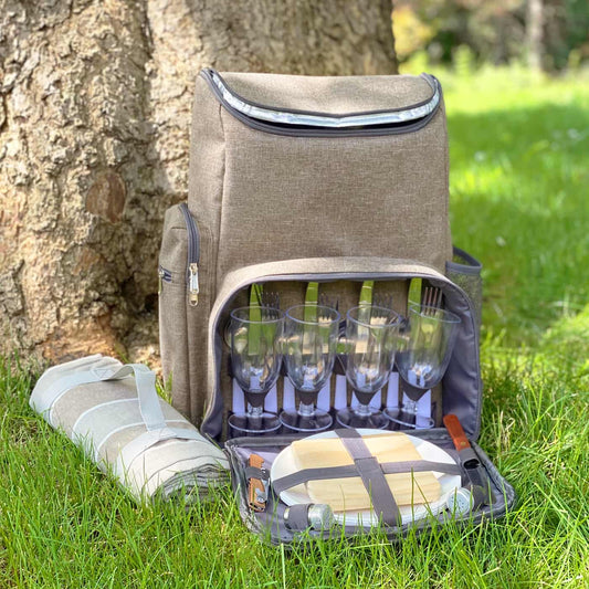 I nostri zaini da picnic sono leggeri e pratici, con uno scomparto isolato e posate, piatti e bicchieri in acrilico leggero e infrangibile. Gli spallacci rinforzati e la cintura lombare garantiscono un maggiore comfort.