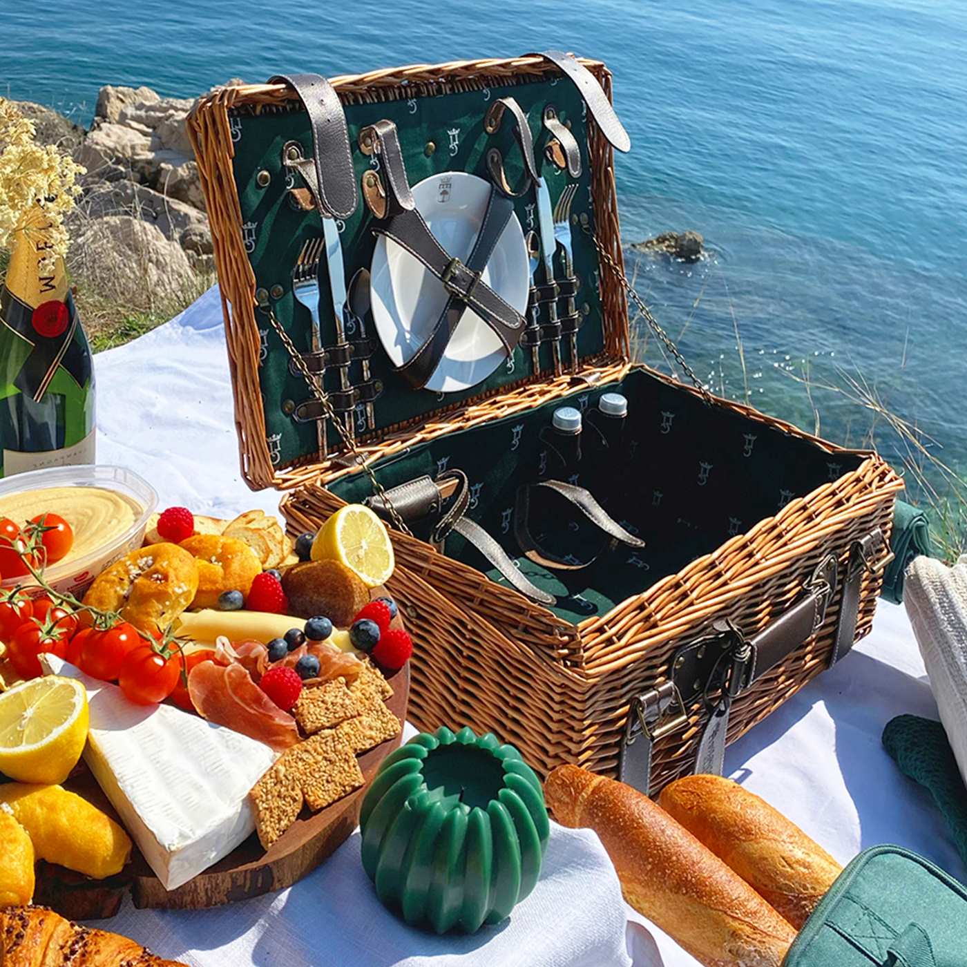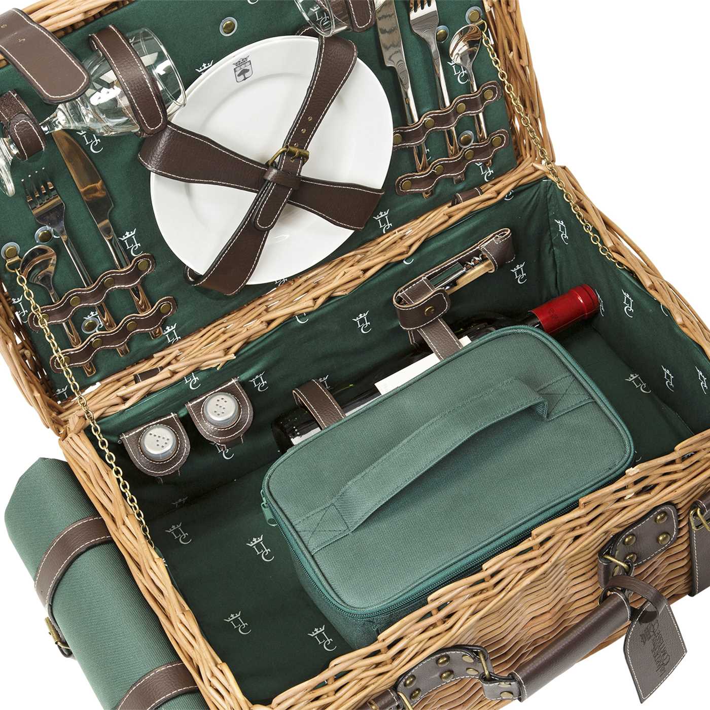 Baule da picnic in vinimi e cuoio Champs-Elysées verde - 2 persone